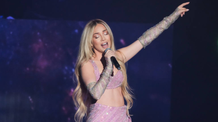 Así reaccionó Ava Max después de que un fan le lanzase su propio vinilo, 'Heaven & Hell', en plena actuación