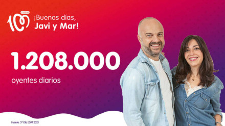 La emisora suma 1.902.000 oyentes y aumenta su distancia respecto a los competidores: ¡Buenos Días, Javi y Mar! crece un 12% más en un sólo trimestre