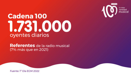 CADENA 100 se consolida como una de las grandes apuestas de la radio musical en la 2ª Ola del EGM este año 2022 con 1.515.000 oyentes diarios