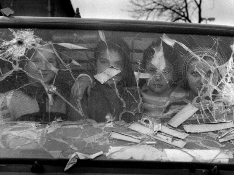 Niñas detras de cristal en Sarajevo. 1994