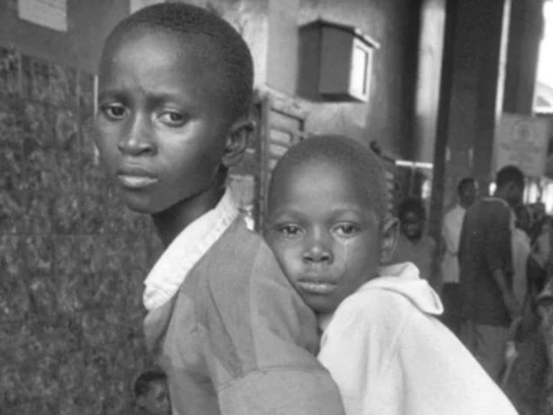 Un niño herido es ayudado por su hermano. Freetown (Sierra Leona), enero de 1999.