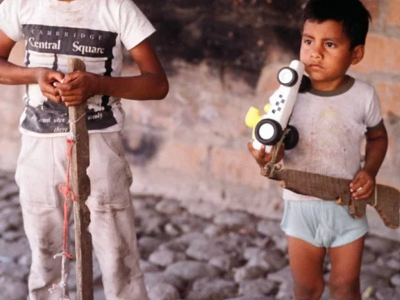 Niños con armas de madera. San José Las Flores (El Salvador), marzo de 1989.