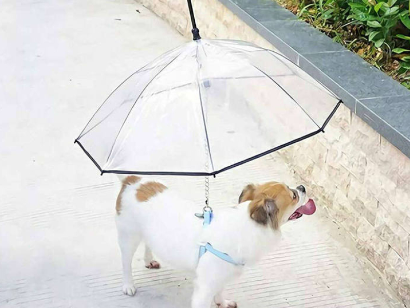 Quizá tu amigo peludo no es de los que aman refrescarse con el agua de la lluvia, y mucho menos en pleno invierno. ¿Qué te parece este genial invento?, con esta correa con paragüas tu perro estará protegido de la lluvia en todo momento.