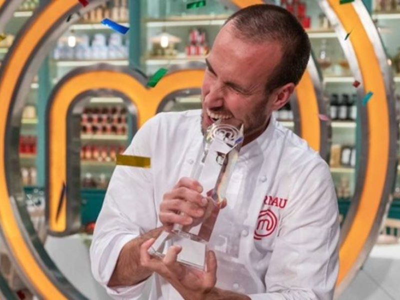 El nombre de Arnau se ha convertido en uno de los más pronunciados desde el pasado martes pro la noche. Fue el primero en conseguir la chaquetilla de duelista en la semifinal, antes de convertirse en el famanete ganador de la novena edición de 'MasterChef'. Cumplía así el objetivo que se había marcado cuando se apuntó al casting del concurso. Porque para él lo de participar está muy bien, pero siempre tuvo claro que su aspiración era ganar y poder darle un giro radical a su vida laboral. Cambiar su trabajo como comercial por las creaciones entre fogones. Su esfuerzo le ha valido pra cumplir su sueño y para, además de levantar el trofeo de vencedor, embolsase los 100.000 euros del premio final y ganar ese curso en el Basque Culinary Center, uno de los más prestigiosos del mundo.