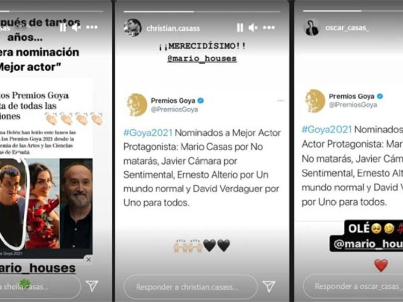 Sheila escribió a través de sus redes sociales: “Y después de tantos años… primera nominación a mejor actor”, el comentario de entre los tres hermanos más enérgico. Pero Óscar y Christian tampoco se quedaron atrás a la hora de felicitarle: “olé” decía Óscar cargado de emoticonos y una visible emoción, “¡merecidísimo!” decía el segundo. Sentimientos que dejan ver el amor y la cercanía que hay entre todos los hermanos, formando un equipo en sí mismo.
